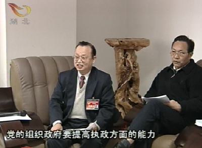 湖北省政協(xié)委員王敬璋  :"  黨的組織 政府 要提高執(zhí)政方面的能力 政協(xié)要提高參政議政能力 都要學(xué)習(xí)提高 是學(xué)習(xí)胡錦濤同志這一兩年來(lái)集中全黨智慧 提出的系列重大理論問(wèn)題 比如說(shuō)以人為本的問(wèn)題 執(zhí)政為民的問(wèn)題 科學(xué)發(fā)展的問(wèn)題 以及和平崛起 和平發(fā)展問(wèn)題 和建設(shè)和諧社會(huì)問(wèn)題 "