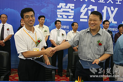 荊楚網消息 記者劉暢、姚啟慧報道:華創(chuàng)會第一天就掀起了高潮,今天下午在武昌科技會展中心,來自四面八方的客商頻頻微笑握手,簽下的協(xié)議項目投資總額超過30億元。