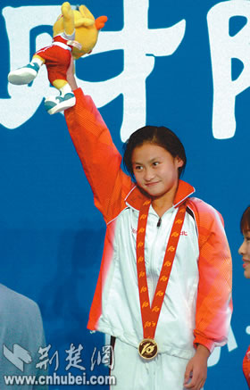 決賽于晚上7時進行,袁培琳正常發(fā)揮,第三跳時她亮出最拿手的動作6142B,排名躍居榜首。然而第四跳時,她出現(xiàn)了較大失誤,名次一下子被拉得很遠。關(guān)鍵的最后一跳,袁培琳的難度系數(shù)達到3.4,無論是空中動作還是入水的浪花,均堪稱完美——評委們頓時給出了93.84的高分。袁培琳終于為我省代表團拿下了這枚寶貴的金牌。