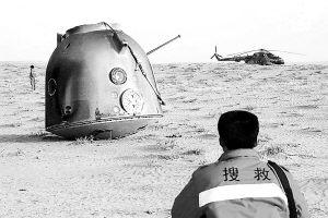 如今,“神舟”6號發(fā)射在即。與“神舟”5號相比,“神舟”6號的各種技術(shù)狀態(tài)又有質(zhì)的飛躍。為了滿足載人航天后續(xù)發(fā)展需要,我國已開始選拔培養(yǎng)首批女航天員。廣大航天工作者正在各自的崗位上,默默地奉獻(xiàn)著全部的心血和汗水。今后,他們還將用一個(gè)又一個(gè)飛天壯舉來證明中國人實(shí)現(xiàn)中華民族偉大復(fù)興的志氣、信心和能力! 2002年4月1日,“神舟”三號飛船在預(yù)定地域著陸。新華社發(fā)來源:《解放軍報(bào)》