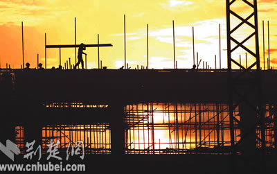 昨日,省藝術(shù)館建筑工地上,工人師傅迎著朝霞在樓頂做清理工作。當(dāng)日,省藝術(shù)館主體工程封頂。據(jù)了解,省藝術(shù)館是為第八屆中國(guó)藝術(shù)節(jié)在我省舉辦而興建的重要場(chǎng)館,占地面積二十三畝,建筑總面積二萬(wàn)多平方米,預(yù)計(jì)于明年底竣工。