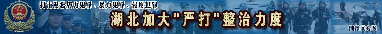 湖北今年嚴打目標確定 省公安廳透露,去冬今春,我省社會治安大局穩(wěn)定,刑事發(fā)案率有所下降,今年將加大嚴打整治力度,重點打擊黑惡勢力犯罪、暴力犯罪、侵財犯罪……[詳細]::武漢警方突襲濱江明珠娛樂城 抓獲45名吸毒者 ::全省交警嚴查盜搶車 一假警車上查處9塊假車牌::湖北圈定106個治安整治重點 武漢市5個地段在列 武漢嚴打建筑工地惡勢力 [市政法委 各區(qū)舉報電話][把黑惡勢力趕出工地訪談熱線開通]::武漢市政法委副書記:廣泛發(fā)動群眾鏟除沙霸石霸::漢陽鏟除沙石惡霸團伙 行兇兩年作惡無數(圖)