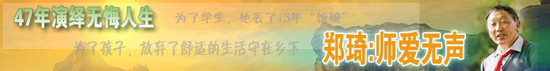 ·鄭琦:為了太陽底下最美好的事業(yè) 從當(dāng)教師的那天起,我就深深地愛上了這個職業(yè),工作的時間越長,愛得越深。 ·楊靜:長大后我就成了你 我毫不猶豫地填報了當(dāng)陽師范音樂專業(yè)——因?yàn)槲蚁胱鲆粋像鄭老師那樣的老師! ·周志富:鄭老師是我最親的人 有句話藏在我的心里整整8年了,今天,我要當(dāng)著這么多人的面叫鄭老師一聲:爸爸! ·阮建平:鄭老師是我人生的引路人 鄭老師所做的一切,不僅是對學(xué)生的今天負(fù)責(zé),更是對學(xué)生的未來負(fù)責(zé)。 ·夏雨:一生為了孩子 鄭老師的不同凡響之處就在于,他把每個人都能做到的小事,堅持做了47年,做成了許多人都難以做到的大事。