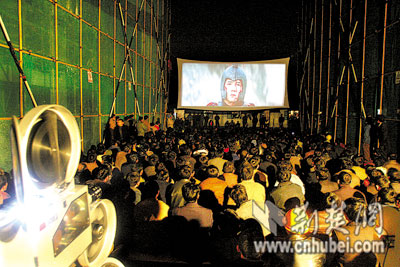 荊楚網(wǎng)(楚天都市報)(記者 楊峰洲 黃宏 通訊員 崔偉 攝影)昨晚,電影《神話》在武漢江岸區(qū)二七路“黃浦人家”建筑工地放映,500多名農(nóng)民工兄弟度過了一個充滿愛的夜晚。