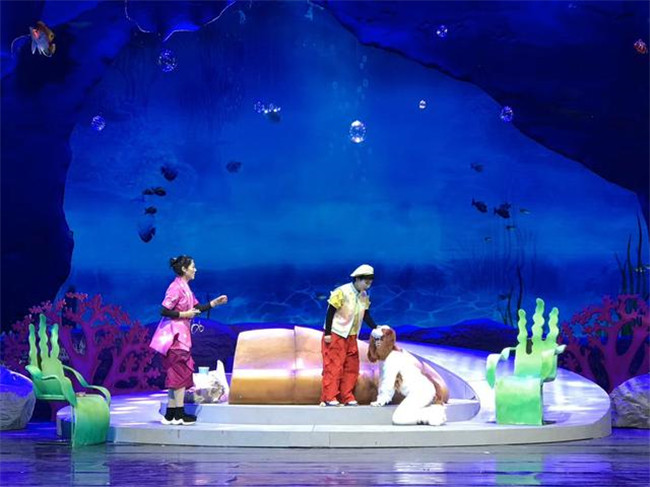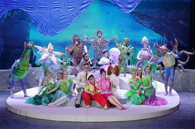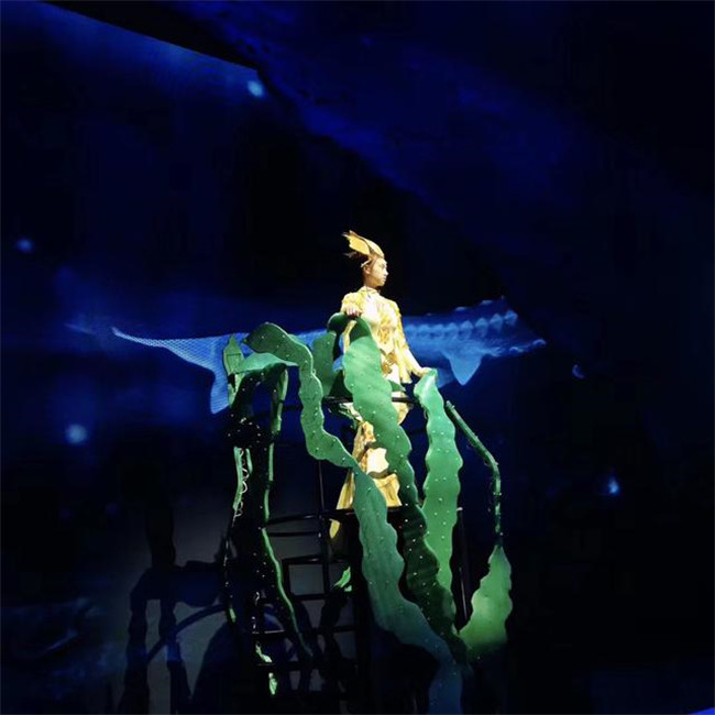 《浮出水面》講述了未來(lái)人類因一次地震而沉入海底生活,小男孩“歡歡”一家在未來(lái)世界認(rèn)識(shí)到環(huán)境污染的嚴(yán)重,在中華鱘“奔奔”的指引下浮出水面,最后重回陸地建設(shè)家園的故事,劇情將大量音樂舞蹈與科學(xué)知識(shí)結(jié)合,涵蓋垃圾分類、人體急救、阿基米德原理、火箭噴射等多種科學(xué)知識(shí)。整場(chǎng)演出亮點(diǎn)紛呈。