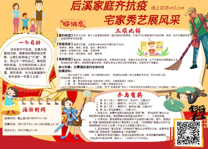 因為,該村正在舉辦“后溪家庭齊抗疫 宅家秀藝展風(fēng)采”活動!