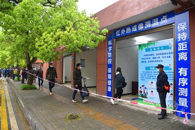 演練圍繞學(xué)校開(kāi)學(xué)后,師生進(jìn)入校園“如何進(jìn)行體溫檢測(cè)”、“發(fā)現(xiàn)發(fā)熱學(xué)生如何進(jìn)行應(yīng)急處置”展開(kāi)。參與演練的各校師生在值班教師的指揮下,保持良好隊(duì)形和安全間距,分批次有序通過(guò)紅外熱成像測(cè)溫處進(jìn)入校園。