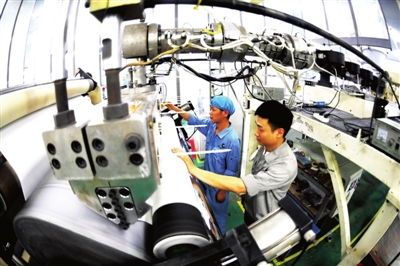 6月2日,武漢高正新(赤壁)材料科技有限公司員工在加班生產(chǎn)改性薄膜。