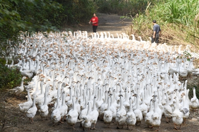 “3500多只鵝,每天光吃糧就得花1700多塊錢,5個(gè)多月來,我們已吃去了16萬多元,真的是‘被吃窮了’!”10月10日,崇陽縣沙坪鎮(zhèn)廟鋪村4組的埂場(chǎng)山,山谷里回蕩著群鵝嬉戲的“嘎嘎”聲,55歲的養(yǎng)鵝人劉金漢和他的妻子張金書卻滿是愁言。