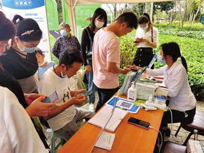 與此同時(shí),在官橋八組田野鄉(xiāng)村公園開(kāi)心農(nóng)場(chǎng)景區(qū)門(mén)前,筆者看到檢票處排起了長(zhǎng)隊(duì),游客們正有序地核銷預(yù)約二維碼、測(cè)溫、登記完后陸續(xù)進(jìn)入景區(qū)。景區(qū)內(nèi)隨處可見(jiàn)拍照合影、嬉戲玩耍的身影,洋溢著一派歡聲笑語(yǔ)的熱鬧景象。
