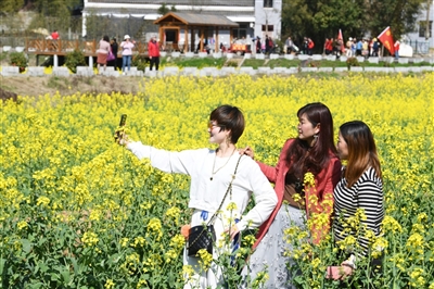吳秀琴是曾鋪村十組村民,一家人正商量如何接待游玩的游客,而她家正好在花海景點(diǎn)的入口處。“去年我家的4畝油菜產(chǎn)了1200斤左右的菜籽,賺了一萬多元?!眳切闱俑吲d地說:“今年準(zhǔn)備開農(nóng)家樂,再賣點(diǎn)臘魚臘肉,多掙點(diǎn)錢!”在賞花的過程中,附近的農(nóng)家樂生意也非?;鸨芏啻迕裨诰包c(diǎn)處擺攤賣起了自家的農(nóng)產(chǎn)品,使游客盡興而來,滿載而歸。