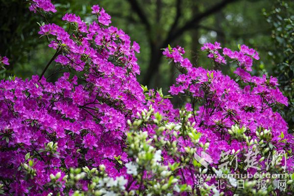 在杜鵑園,5萬株亞高山杜鵑全部含苞待放,蓄勢待發(fā),欲與群花爭艷。鹿角杜鵑、映山紅等杜鵑品種花意正濃,紅、白、粉、紫、綠各色杜鵑,盡顯盎然春意。清明節(jié)期間,游客可以觀賞到近半杜鵑開放。
