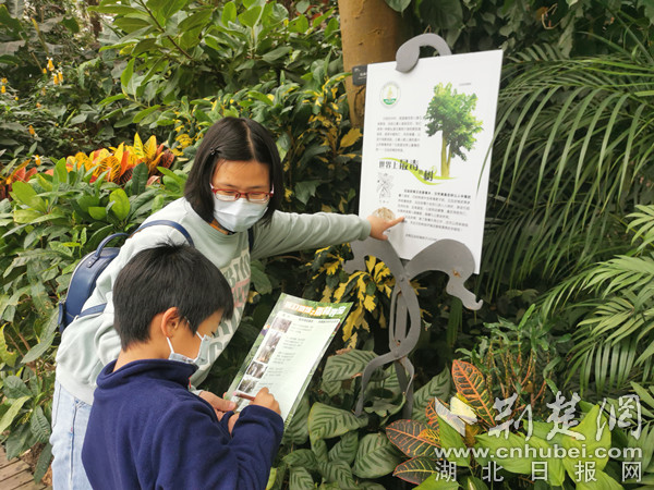 “哇,箭毒木,世界上最毒的樹就是長這樣的嗎?”在千奇百怪、生機(jī)勃勃的熱帶雨林,有很多讓人驚奇的植物。武漢植物園科普老師魏妮娜帶領(lǐng)親子家庭走進(jìn)武漢植物園景觀溫室熱帶雨林室,了解雨林奧秘:“這是龍血樹,會(huì)流出褐紅色的汁液。龍血樹是珍貴的藥用植物,是配制活血良藥‘血竭’的主要原料。”隨后,小朋友發(fā)現(xiàn)一顆大樹的樹干和樹枝上長著鳥巢蕨、蘭花等上10種植物,就像一個(gè)“空中花園”。