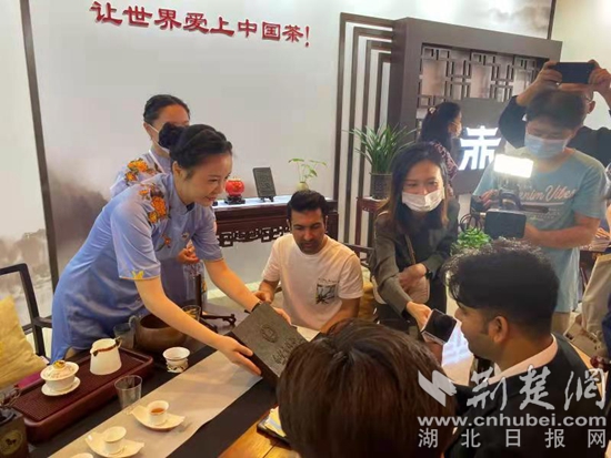 活動(dòng)期間,赤壁青磚茶亮相論壇,成為現(xiàn)場(chǎng)焦點(diǎn),吸引了眾多嘉賓駐足、品嘗、合影。在主論壇所在地的紫荊廳茶歇區(qū),記者看到,茶藝師精心準(zhǔn)備了赤壁青磚茶,供嘉賓品嘗,觀看茶藝表演,感受湖北茶的獨(dú)特魅力。