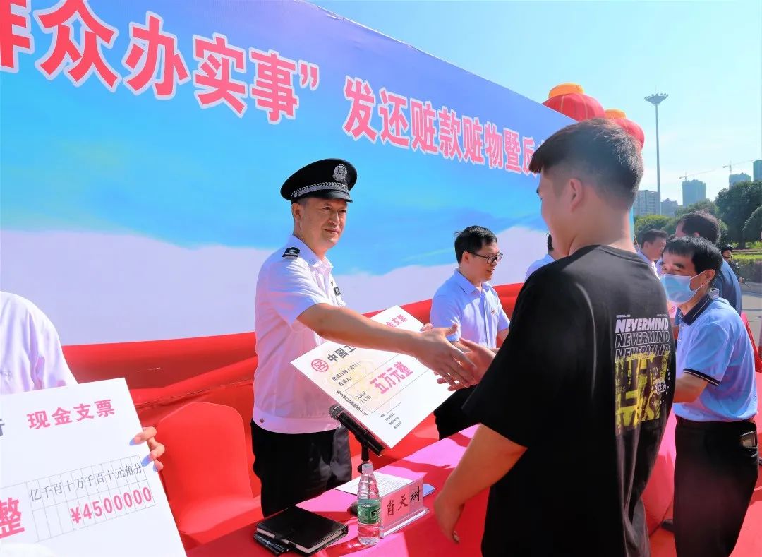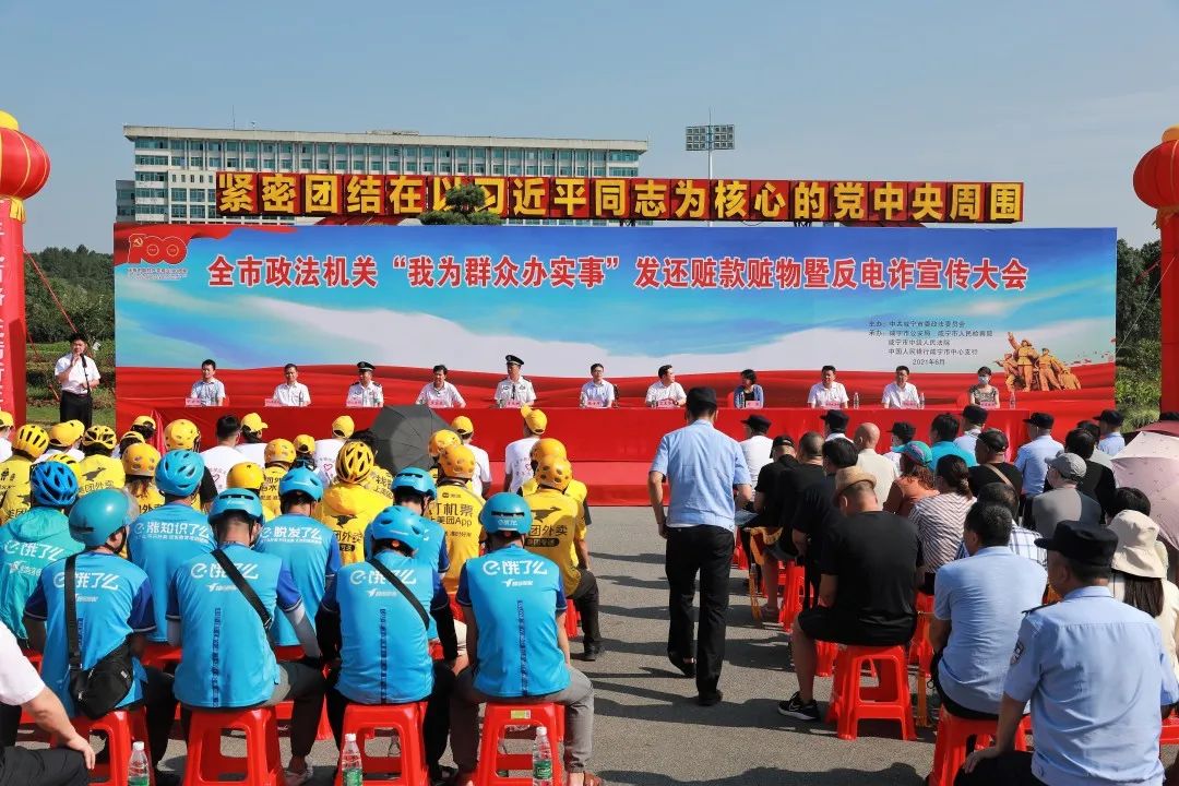 通過此次退贓大會,進(jìn)一步向全市人民展示了咸寧公安扎實開展“我為群眾辦實事”活動成效,以及嚴(yán)打嚴(yán)防各類犯罪,致力“打防管控宣”,堅決斬斷伸向群眾錢袋子的黑手。