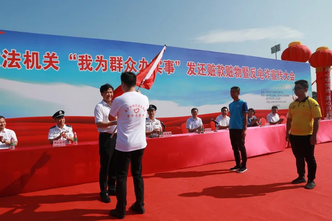 6月24日上午,全市政法機(jī)關(guān)隆重舉行“我為群眾辦實事”發(fā)還贓款贓物暨反電詐宣傳大會,集中返還在偵察破案中追繳的部分贓款,以及汽車、筆記本電腦、手機(jī)、煙酒、郵票等被盜、被騙贓物,總計價值5038.6萬元,彰顯了公安機(jī)關(guān)的打擊戰(zhàn)果,震懾違法犯罪,進(jìn)一步提升人民群眾安全感和滿意度。