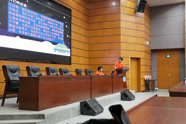 23日下午,閉營(yíng)儀式在A0113舉行。營(yíng)員們以小組為單位進(jìn)行科技項(xiàng)目展演。