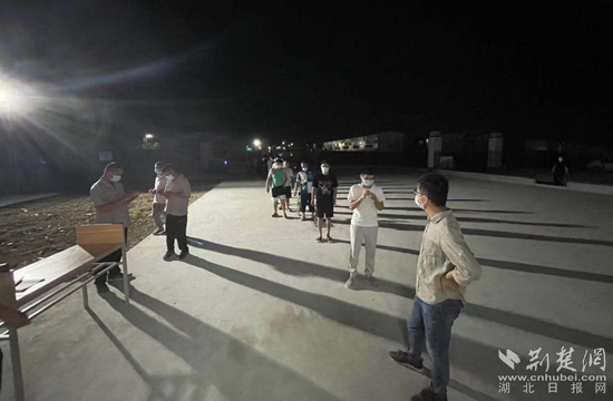 荊楚網(wǎng)(湖北日?qǐng)?bào)網(wǎng))訊(通訊員 余晨)8月6日晚8時(shí)許,黃岡市疾控中心在順豐白潭湖培訓(xùn)中心(一期)工地上,正忙著給工友們采集核酸樣本。百余名工人在疾控工作人員的引導(dǎo)下,保持一米安全距離,排隊(duì)進(jìn)行核酸檢測(cè)。據(jù)悉,黃岡市疾控中心作為中堅(jiān)力量將對(duì)黃州城區(qū)64個(gè)工地進(jìn)行核酸采樣工作。