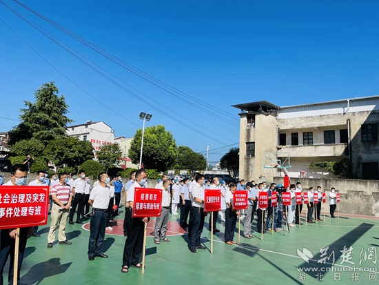 荊楚網(wǎng)(湖北日報網(wǎng))訊(通訊員 何小紅 呂雷 陳鈺)8月6日,蘄春縣張塝鎮(zhèn)組織開展疫情防控應(yīng)急演練,采用桌面推演和現(xiàn)場實戰(zhàn)相結(jié)合的方式,提高基層鄉(xiāng)鎮(zhèn)應(yīng)對突發(fā)公共衛(wèi)生事件的快速響應(yīng)及處置能力,織密疫情防控網(wǎng)。
