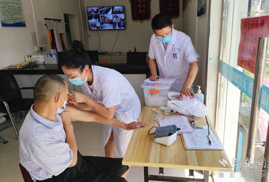 麻城市人民醫(yī)院工作人員為受助對象接種新冠疫苗。通訊員 供圖