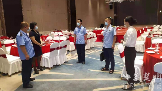 執(zhí)法人員對餐飲行業(yè)開展疫情防控檢查。余洋 攝