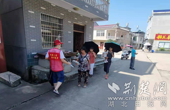工作人員勸導村民出門戴口罩。通訊員 供圖