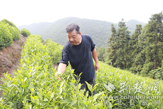 李五毛查看茶樹(shù)生長(zhǎng)情況。通訊員 供圖