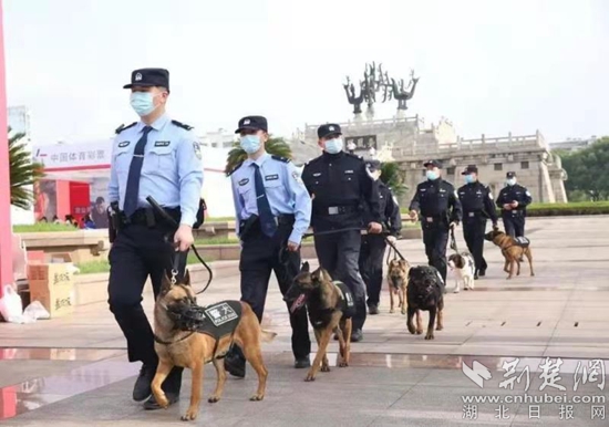 特警支隊帶警犬巡邏。通訊員供圖