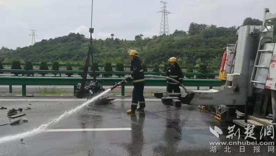 事故發(fā)生正值中午,高速路氣溫超過33攝氏度,事故現(xiàn)場的汽油味十分濃烈,處置過程中一旦因摩擦產(chǎn)生火花,就可能引燃泄漏的汽油,造成二次災(zāi)害事故。