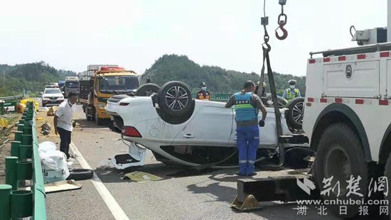 消防人員立即鋪設(shè)水帶,對事發(fā)車輛汽油泄露區(qū)域進(jìn)行清理。經(jīng)過17分鐘的緊急排險(xiǎn),消防、高速警察等部門成功利用吊車將事故車輛轉(zhuǎn)移到了清障車上,隨著路障被順利清理,該路段的交通也逐步恢復(fù)了暢通,事故原因相關(guān)部門還在調(diào)查中。