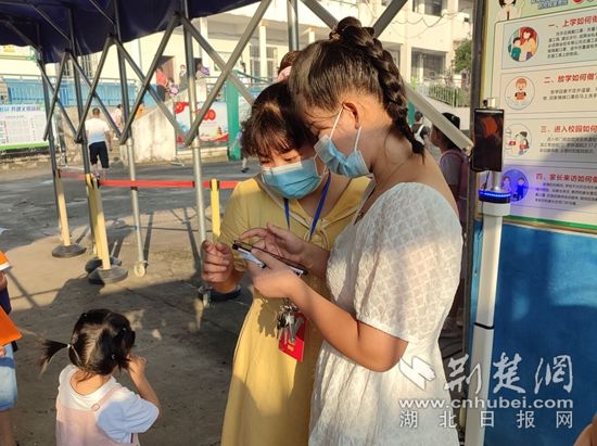 王葉小學(xué)值日教師對返校學(xué)生的健康碼、行程碼等逐一進行核查,確保返校學(xué)生身體健康狀況正常。黎歡歡 供圖