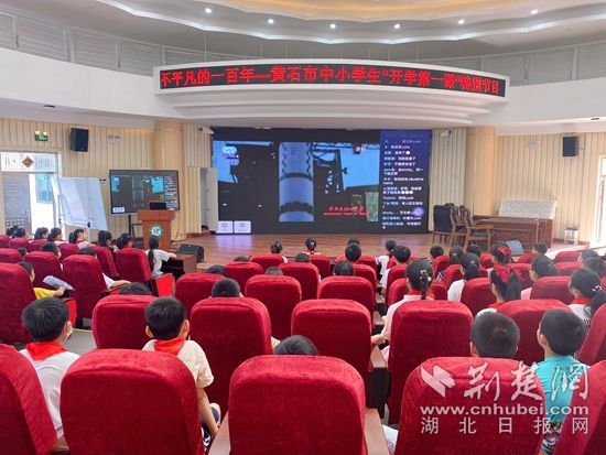 四棵小學(xué)的同學(xué)們坐在煥然一新的報告廳里觀看黃石市中小學(xué)生“開學(xué)第一課”特別節(jié)目。 紀(jì)晚霞 供圖