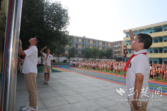 太子鎮(zhèn)洪橋小學(xué)舉行新學(xué)期第一次升國旗儀式。盧中橋 供圖