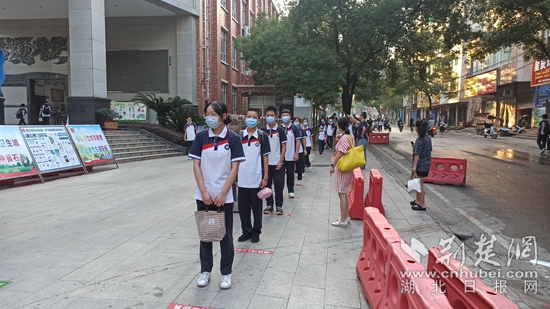 河口中學(xué)學(xué)生依次測體溫,填信息,有條不紊地開展入學(xué)檢查。李君 供圖