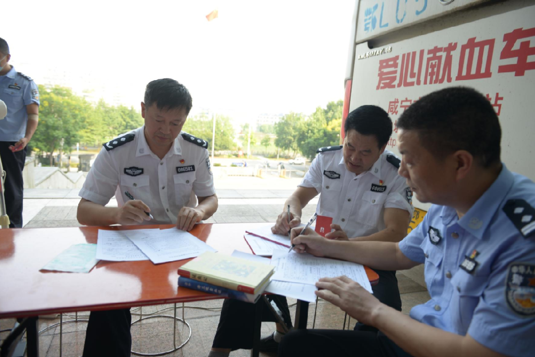 在咸寧公安主樓門(mén)廊中,聞?dòng)嵹s來(lái)的民輔警整齊列隊(duì),按照醫(yī)務(wù)人員的指引,依次進(jìn)行信息登記、血液檢查、靜脈采血。有多次參加獻(xiàn)血的“金獎(jiǎng)老將”,也有初次上陣的“警營(yíng)新兵”,還有尚在見(jiàn)習(xí)期的“學(xué)警新秀”。心照不宣的接力,在新老交織中流淌、賡續(xù)、傳承,匯聚起愛(ài)的暖流!