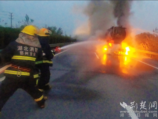 荊楚網(wǎng)(湖北日?qǐng)?bào)網(wǎng))訊(通訊員董玲 王彬) “喂,是119嗎?我現(xiàn)在在漢鄂高速上,我的水泥罐車著火了,你們快點(diǎn)來幫幫我……”9月1日18時(shí)27分,鄂州市消防救援支隊(duì)接到報(bào)警稱,在漢鄂高速杜山收費(fèi)站附近有一輛水泥罐車發(fā)生自燃事故,情況十分緊急。指揮中心迅速調(diào)派樊浦大道消防站、華容執(zhí)勤點(diǎn)前往救援。