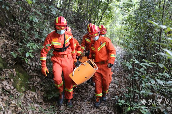 馬面沖村周家寨山屬于未開發(fā)山區(qū),海拔1500余米,山路陡峭,雜草叢生,救援車輛只能開到周家寨山腳下。救援人員攜帶安全繩、多功能救援擔架、急救包等物品在當?shù)叵驅У膸ьI下,徒步進山,展開救援。半個小時后,救援人員到達現(xiàn)場,而此時跌落山下的“驢友”躺在地上,身上多處受傷,只能發(fā)出微弱的呻吟。
