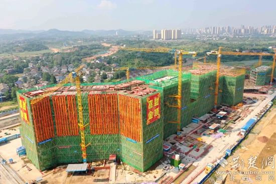 鄂州市公共衛(wèi)生臨床中心婦幼保健院大樓喜封金頂。通訊員供圖