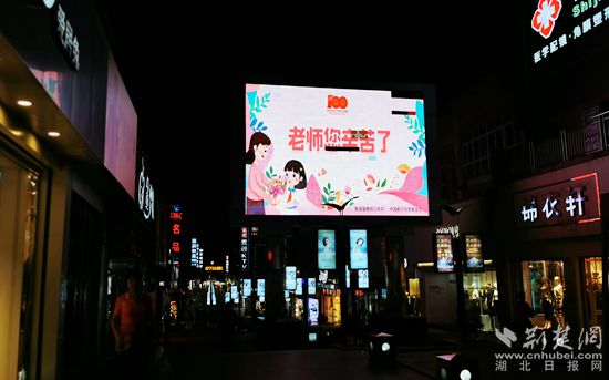 黃岡奧康步行街亮出“老師,您辛苦了”致敬全市教師。通訊員 供圖