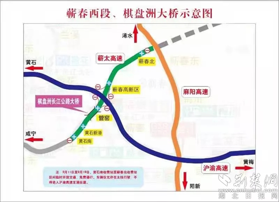 蘄春至太湖高速公路蘄春西段臨時(shí)免費(fèi)通行路段不與麻陽(yáng)至武穴高速公路樞紐互通(株林樞紐互通)連通;棋盤洲長(zhǎng)江公路大橋應(yīng)急通行路段不與棋盤洲長(zhǎng)江公路大橋連接線陽(yáng)新至大冶段連通,不與黃黃高速公路樞紐互通(紅旗崗樞紐互通)連通。