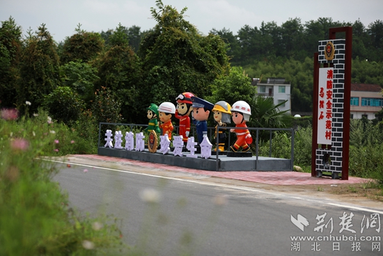 “農(nóng)村防火基礎(chǔ)一直比較薄弱,提高村民的消防安全意識就要潛移默化,所以我們就想著在這里打造一個示范點”,蘄春縣張榜鎮(zhèn)一位工作人員介紹。石頭做的村牌,背景是一塊向陽的坡地,“人民至上,生命至上”八個紅色大字赫然在目。