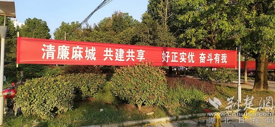 荊楚網(wǎng)(湖北日報(bào)網(wǎng))訊(通訊員聶丹芬)金秋9月,走進(jìn)麻城,陣陣“廉風(fēng)”撲面而來,聲聲“廉音”縈繞耳畔,大街小巷隨處可見的廉政宣傳標(biāo)語,已在當(dāng)?shù)匦纬闪艘坏懒聋惖娘L(fēng)景線。
