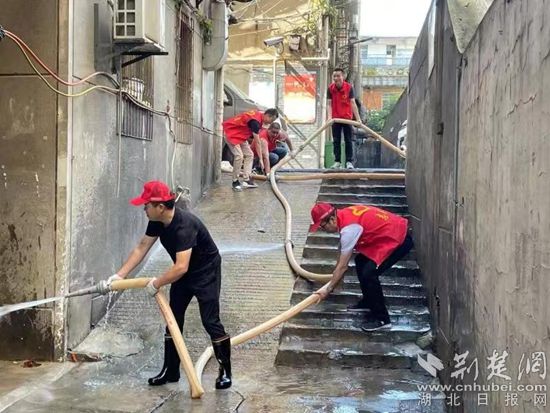 沖洗社區(qū)衛(wèi)生死角。通訊員供圖