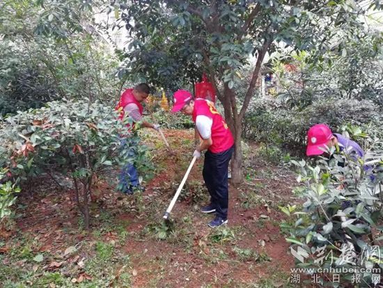 整理小區(qū)綠化帶。通訊員供圖