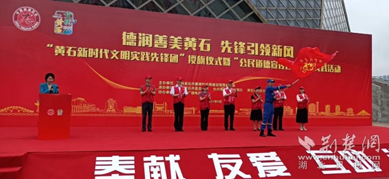 “黃石新時(shí)代文明實(shí)踐先鋒團(tuán)”授旗。通訊員 供圖