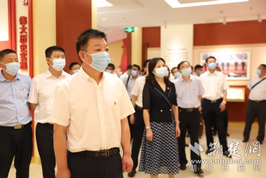 在基地展館講解人員的帶領(lǐng)下,湖北師范大學(xué)黨委書記周啟紅一行逐一參觀了“趕考之路、廉政之規(guī)、覆車之鑒、湖北之為”廉政展廳。