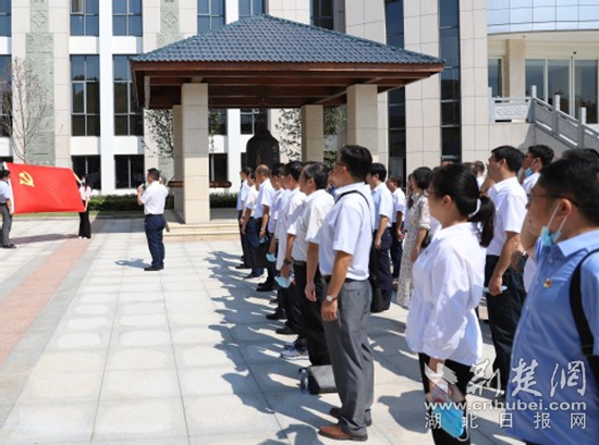 全體黨員干部面對黨旗,重溫入黨誓詞。通訊員 供圖