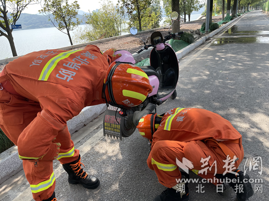荊楚網(wǎng)(湖北日報網(wǎng))訊(通訊員張敏 張登輝)9月26日13時許,正在湖邊散步的黃石市民唐先生,意外發(fā)現(xiàn)一條大蛇飛快鉆入一輛電瓶車的踏板箱,存在潛在危險。他一時不敢上前查看,隨即撥打了119報警電話求助。