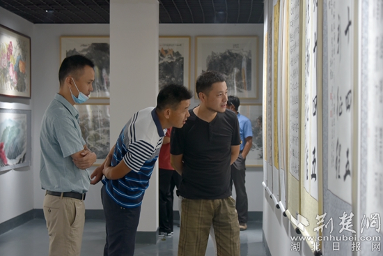 據(jù)了解,本次展覽是英山縣近年來書畫創(chuàng)作成果的一次集中呈現(xiàn)。展出的書法作品有渾然古樸的篆隸,有工整雋秀的楷書,有揮灑自如的行草,形式多樣,異彩紛呈。美術(shù)作品涉及人物、山水、花鳥等多種題材,筆墨淋漓,色彩斑斕。一筆一劃、一景一物,盡顯作者深厚的藝術(shù)功力,飽含著對家鄉(xiāng)的熱愛,浸潤著對祖國的深情。開展現(xiàn)場吸引了數(shù)百人前來觀展。