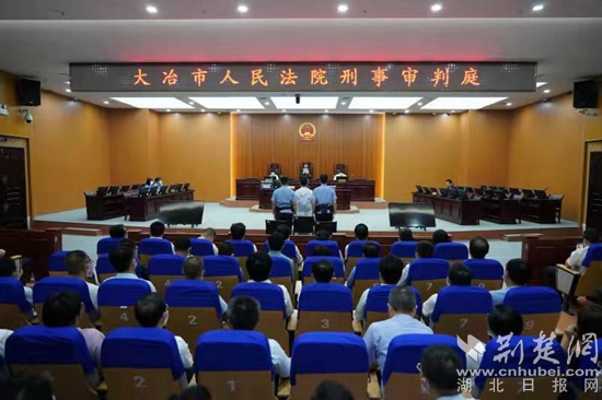 當天,大冶市組織四大家領導、黨政機關“一把手”等120余人參加旁聽。這也是今年該市黨風廉政建設宣傳教育月的一項活動,旨在讓領導干部特別是黨政部門“一把手”“零距離”接受警示教育,直觀感受紀法威嚴,切實筑牢拒腐防線。